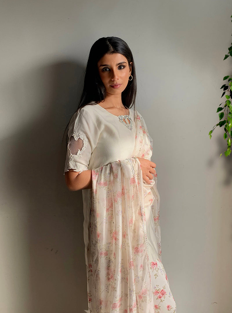 3 Piece Suit (Pure cotton net shirt, Silk shalwar tissue silk dupatta with hand worked button) Elevate your power dressing with Mahnoor Dochki's meticulously crafted women's suits. Designed in Pakistan, these timeless pieces are made from high-quality fabrics to flatter every body type and exude sophistication. Perfect for the modern woman who demands both style and comfort.